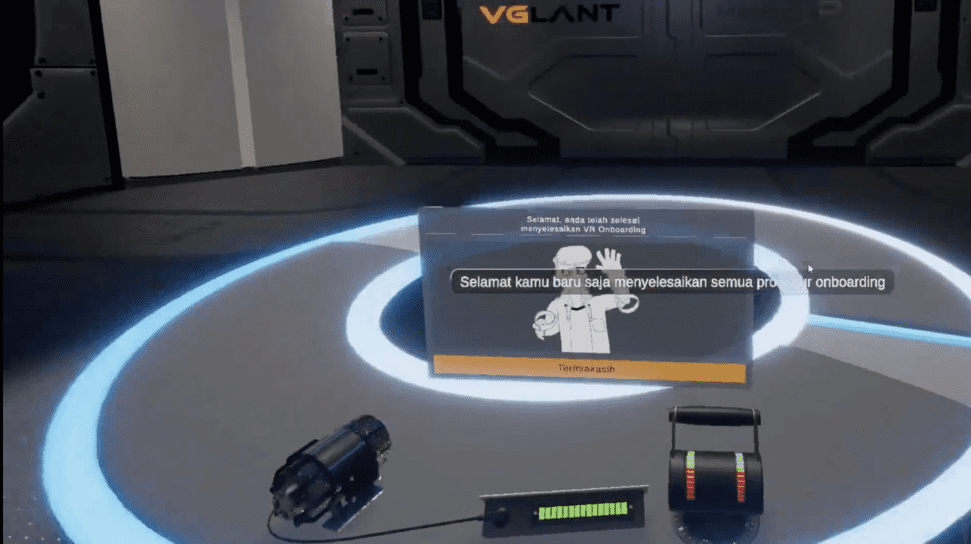 To seamlessly bridge this gap, the VGLANT VR Onboarding Module acts as the essential gateway to your organization’s immersive training program. Set against a clean, futuristic industrial backdrop, this introductory phase eliminates all high-stakes hazards. Instead, it focuses purely on mastering VR fundamentals, guiding complete beginners through a step-by-step interactive tutorial until they become confident digital operators.
